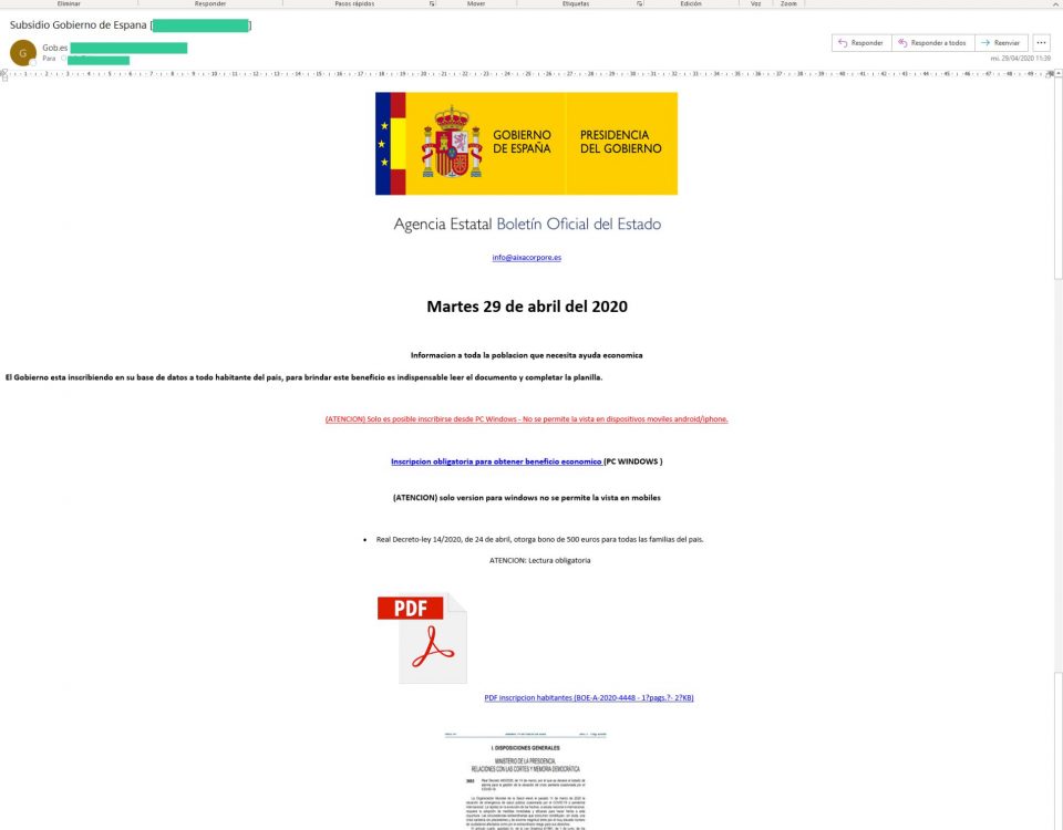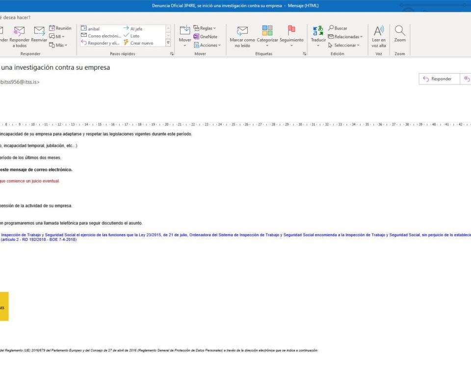 Si por algún motivo has pinchado en uno de los enlaces, o abierto un archivo adjunto, y tu equipo se ha visto afectado, nuestras credenciales robados o nuestras cuentas de correo electrónico suplantadas, se debe hacer una valoración del número de afectados, así como del volumen y naturaleza de los datos personales a los que se ha tenido acceso y, si procede, notificar a la Agencia Española de Protección de Datos esta brecha de seguridad. en el plazo máximo de 72 horas desde su conocimiento.