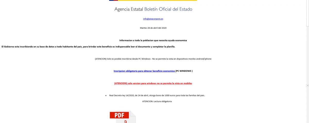 • Real Decreto-ley 14/2020, de 24 de abril, otorga bono de 1000 euros para toda las familias del pais.