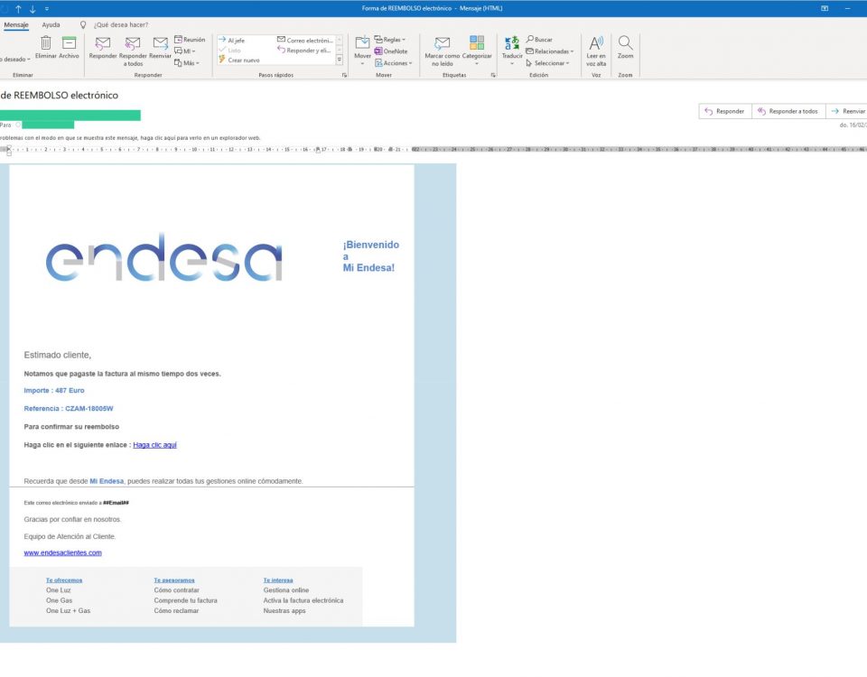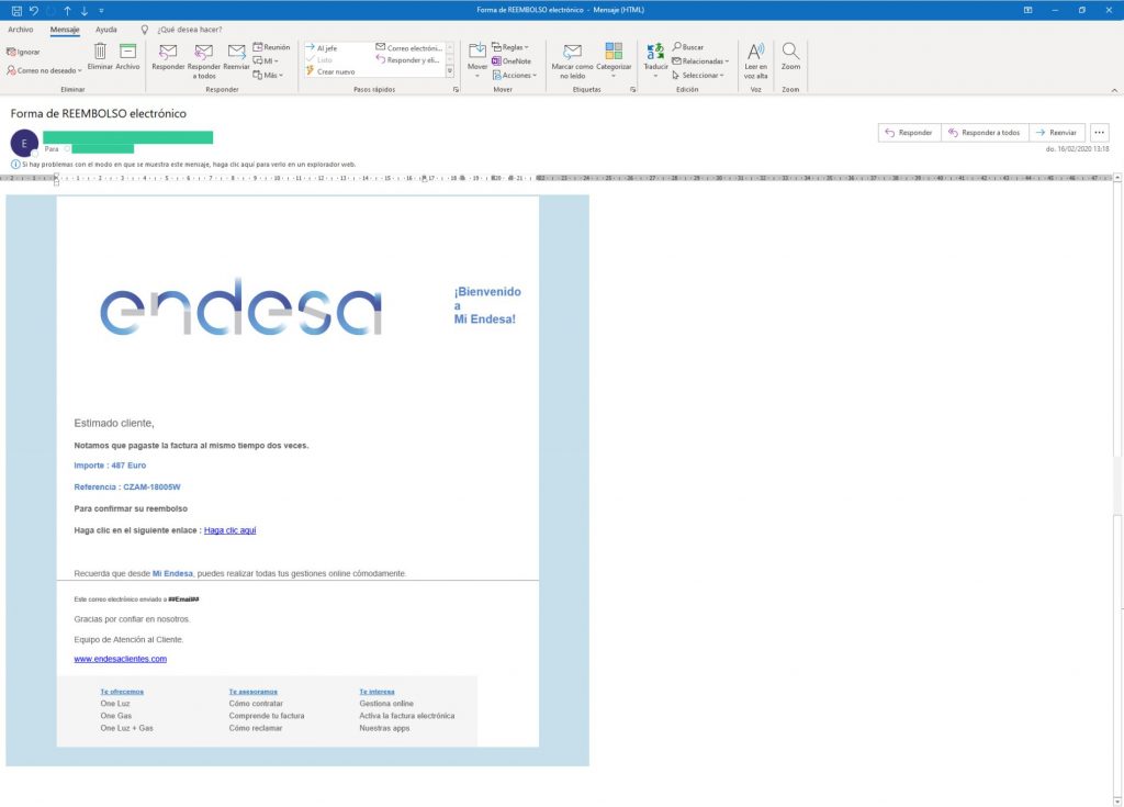Si bien el mail del remitente parece ser correcto, y supuestamente es fiable, al verificar la dirección a la que nos reenvía los enlaces del contenido del mensaje es una diferente de la del remitente, lo que nos indica que se trata de un correo muy sospechoso y con alta probabilidad de ser fraudulento