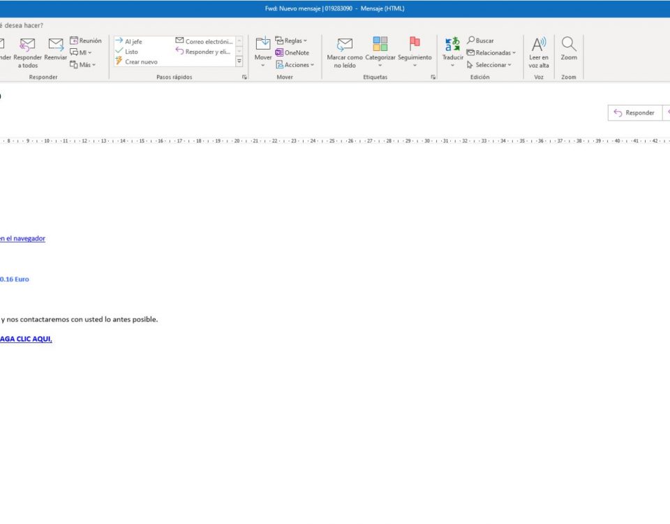 Mail con enlaces sospechoso, así como su contenido.